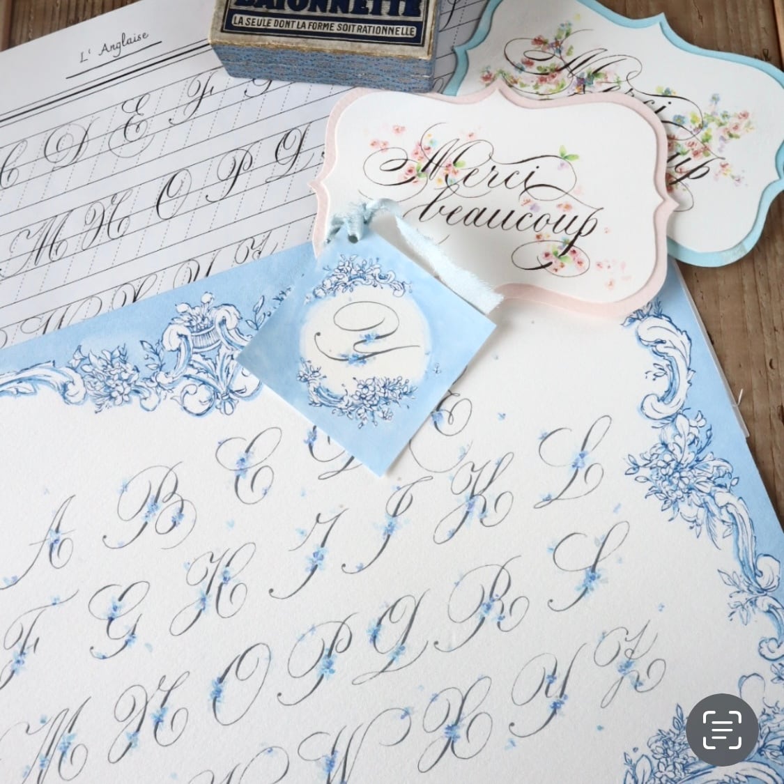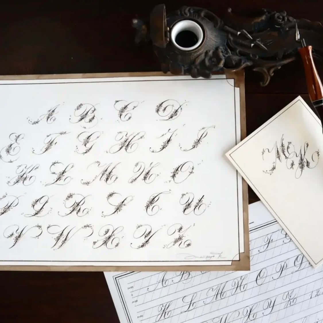 華やかな花文字に繊細なアングレーズ体をお楽しみください⭐︎(ワークショップではヴィンテージニブを使いますが、お手持ちのニブでもお楽しみ頂けます。)